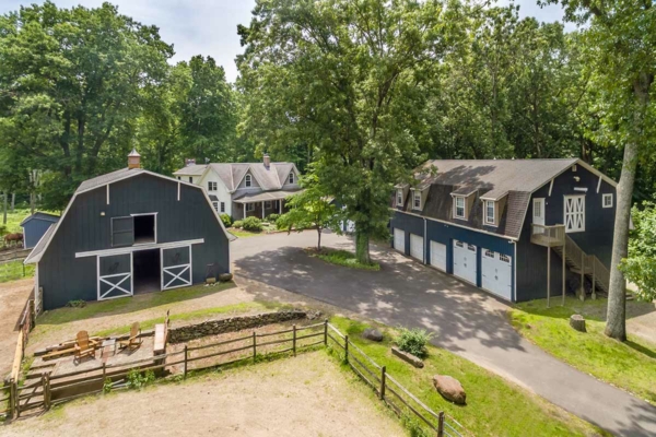 Working horse farm in Easton with farmhouse & swimming pool. 10 acres of rolling green countryside with a pond & trails.