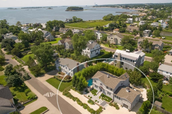 Spectacular beachfront home w/pool & fabulous covered porch set on a private, perfectly manicured acre steps from Shorehaven Country Club.