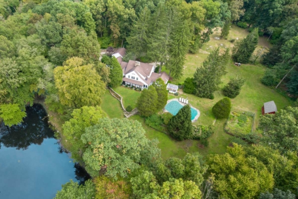 High-end finishes throughout. A Chef’s kitchen is perfect for entertaining. Park-like setting overlooking a pond and brook from the stone patio. Ideal for families, with close proximity to town, train, schools, and parks.