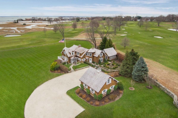 Serene and private, this spectacular Nantucket-style home enjoys sweeping, unobstructed views of Shorehaven Golf Course and Long Island Sound. Breathe in the captivating setting on the wraparound deck and gather with friends around the fire pit at the end of the day.