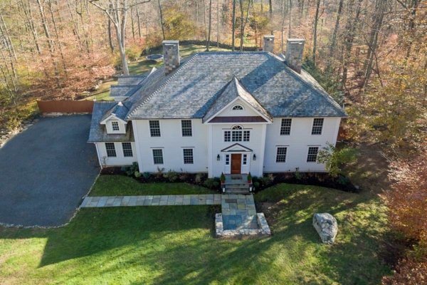 Greenfield Hill home situated at the end of a long driveway near the Patterson Club, Redding Road offers beautifully sunlit living spaces. Gourmet kitchen with marble countertops and stainless steel appliances. Stone terraces surrounded by gardens and a tennis court create a private oasis.