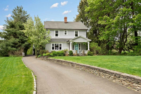This happy home boasts a bright, open floor plan & stunning architectural details. Beautifully sited on private, park-like acre & sited for a pool. Ideally located on a quiet lane close to schools, town & trains.