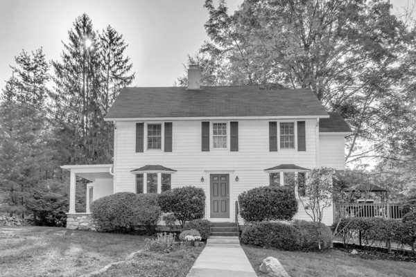This charming New England colonial is nestled on a picturesque, park-like acre dotted with mature trees and bordered by an historic stone wall, conveniently located close to Westport, Wilton, trains and the Merritt.